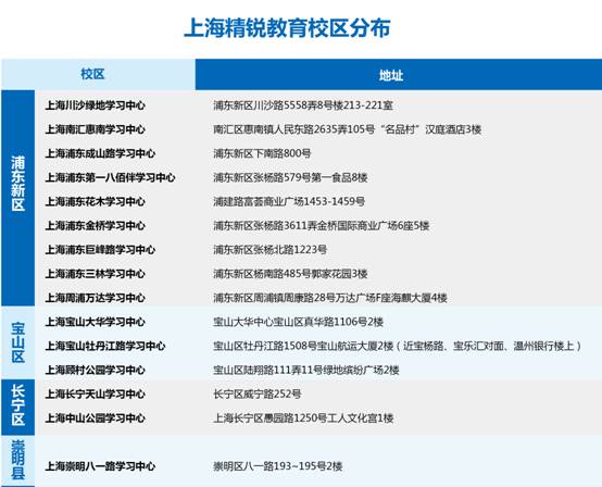2.前往上海精銳教育學習中心咨詢、報名,查看下文校區分布尋找您身邊的精銳學習中心
